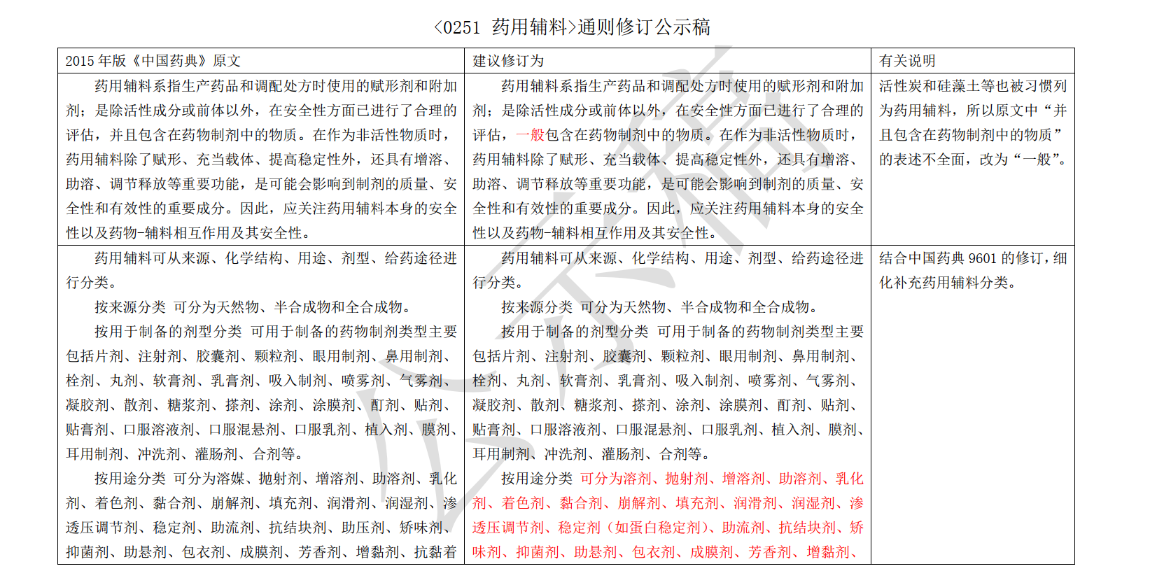 近日,國家藥典委員會發(fā)布了《關于《中國藥典》四部通則0251藥用輔料修訂的公示》,公示稿全文如下: